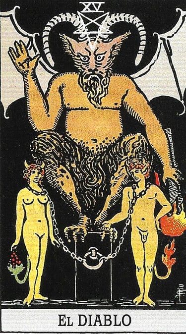 El Diablo, la carta número 15 del Tarot, es un arcano mayor que despierta curiosidad y a veces temor. Su representación gráfica muestra un sátiro, una criatura mitad hombre y mitad cabra, danzando al son de un extraño artefacto en su mano izquierda. Pero más allá de su apariencia, El Diablo no encarna la maldad ni la brujería. Su significado se entrelaza con el *libre albedrío* y la dualidad humana.