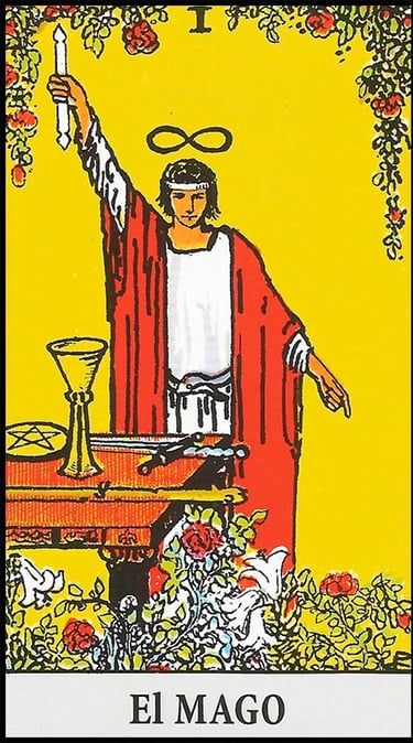 El mago en el tarot es una carta que representa el poder de la voluntad, la creatividad, la comunicación y la acción. El mago es capaz de conectar el mundo espiritual con el material, usando su inteligencia, su ingenio y sus recursos. El mago simboliza el inicio de un nuevo ciclo, una nueva oportunidad para realizar nuestros proyectos y cumplir nuestros sueños.