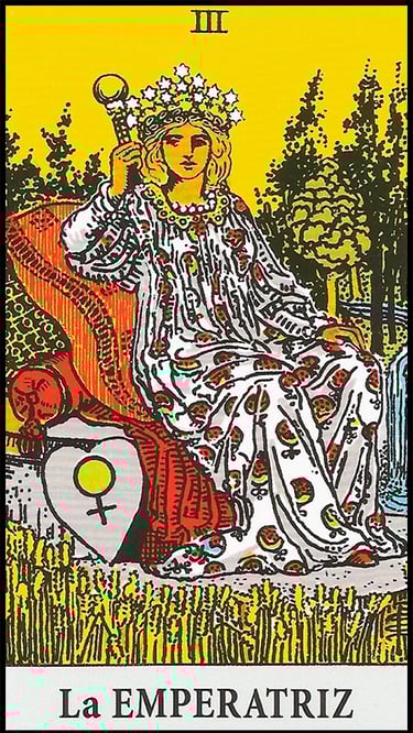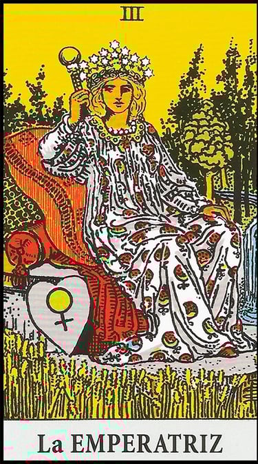 La Emperatriz en el tarot nos invita a confiar en nuestro poder femenino, en nuestra intuición y en nuestra pasión, en lugar de en nuestra mente racional o intelecto consciente. La Emperatriz nos aconseja ser generosos, amorosos y comprensivos, y no egoístas, posesivos o celosos. La Emperatriz nos anima a buscar la belleza, a disfrutar de los placeres, a crear y a expresar nuestro potencial. La Emperatriz nos recuerda que tenemos el poder de dar vida y de transformar la realidad con nuestra voluntad y nuestra acción.